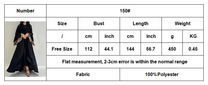 Make a statement with this elegant black open-front abaya featuring stunning leopard print layered bell sleeves. Perfect for Ramadan, special occasions, and casual wear, this loose fit kaftan combines sophisticated style with all-season comfort.