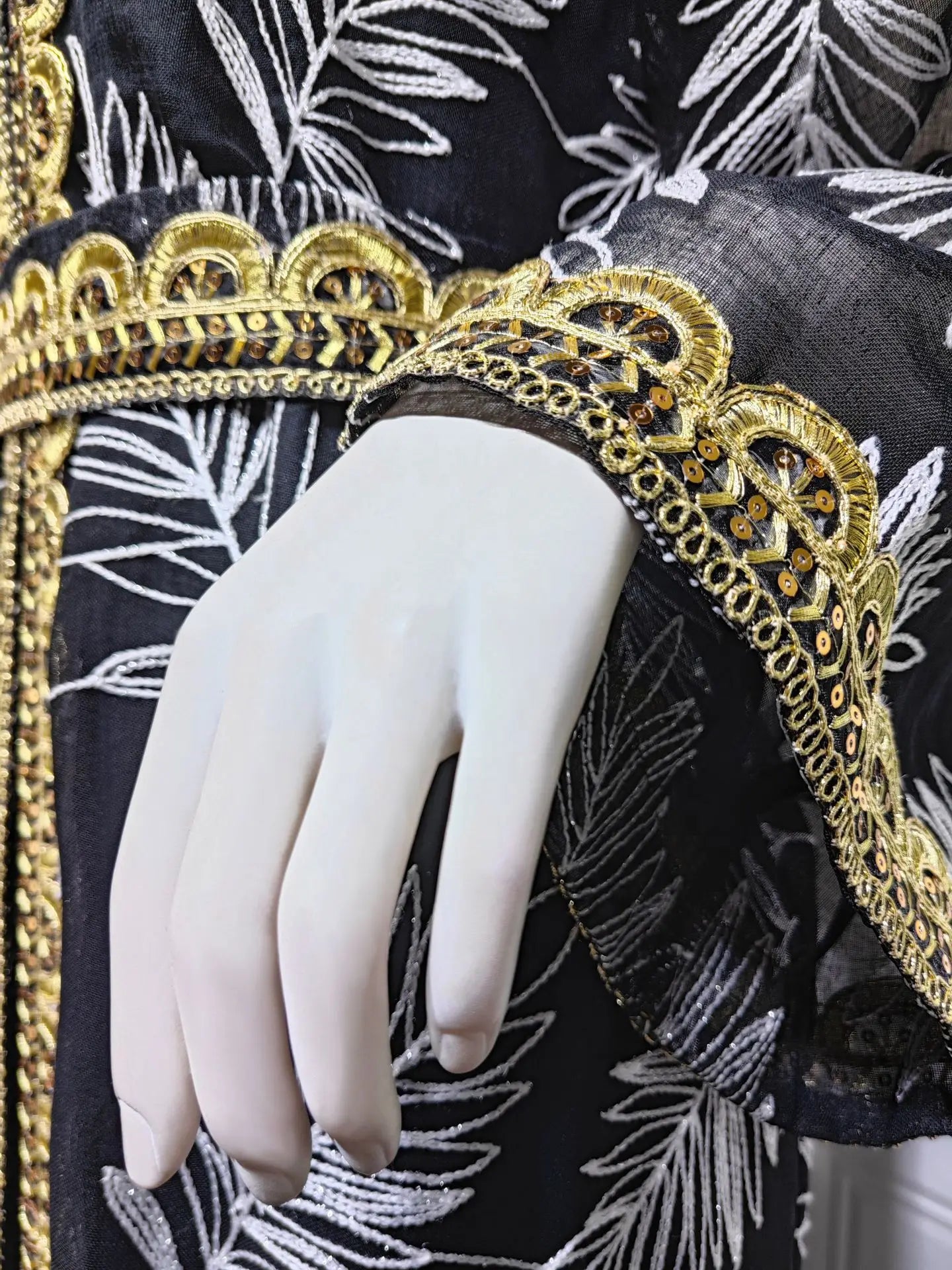 Let the embroidery be your statement—pair with simple, elegant accessories that don't compete with the intricate details. A coordinating hijab in black or a complementary color completes the modest look. Add your finest jewelry for maximum impact, or keep it minimal for understated elegance.